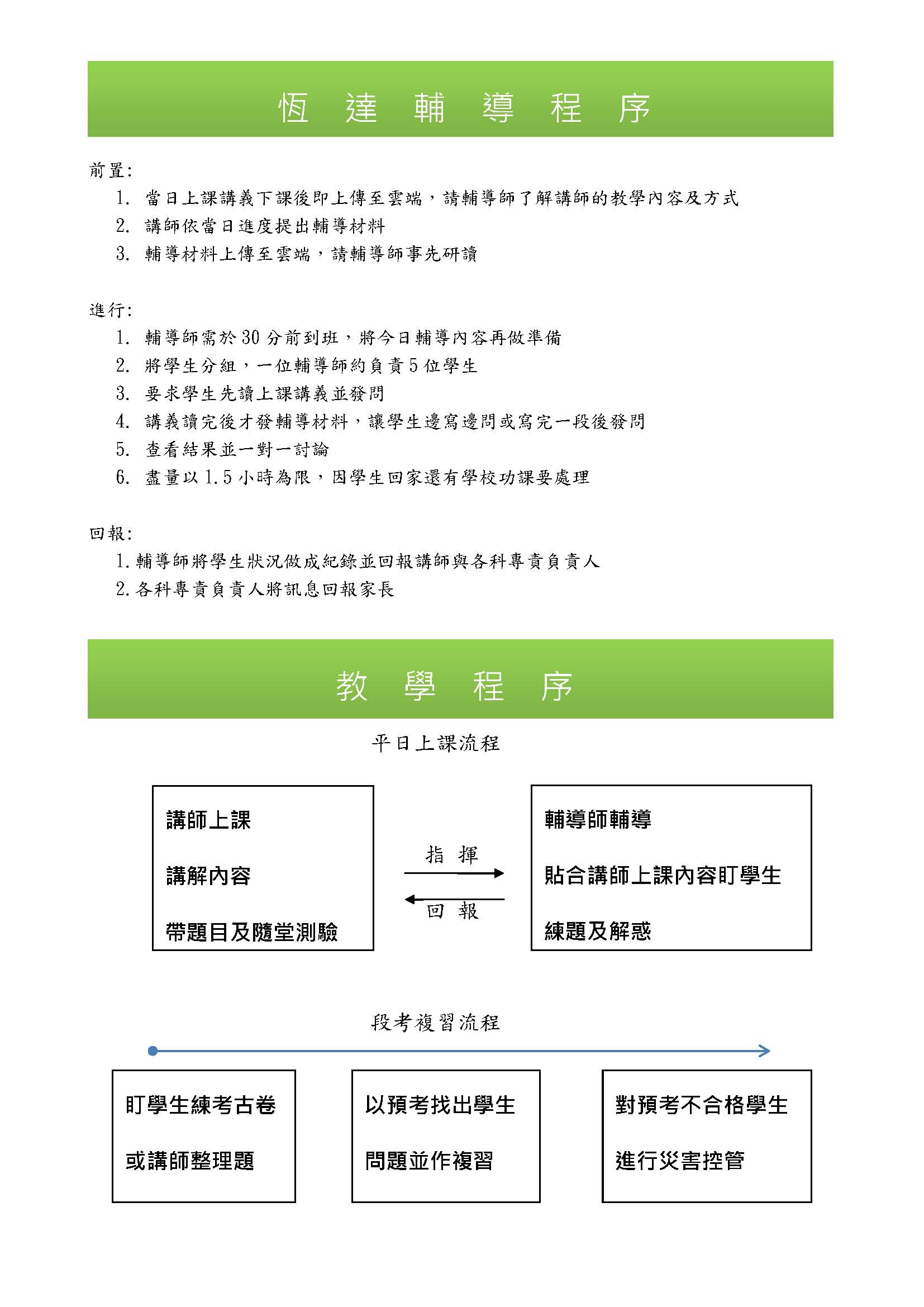 下圖為本班輔導及教學流程,恆達期望給更好的教學及照顧。